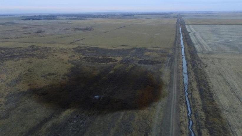 Pipes to be used for the keystone xl pipeline are stored in a field near dorchester.